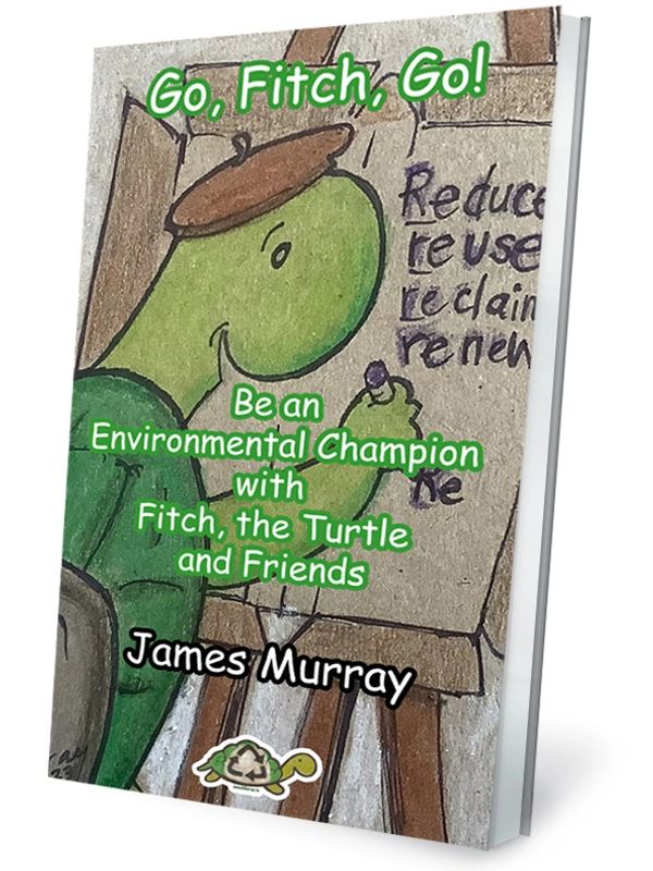 Le nouveau livre électronique de James sortira début 2026. James crée de l’art écologique depuis de nombreuses années. Le livre « Allez, Fitch, Allez ! » présentera une série de dessins de James de sa tortue préférée, Fitch et de ses amis qui éduquent, amusent et défendent notre environnement et notre planète. Le livre présentera ses œuvres sur ce site web et sur les réseaux sociaux, ainsi que de nouvelles œuvres.