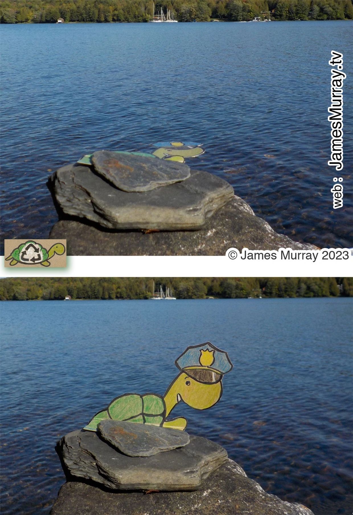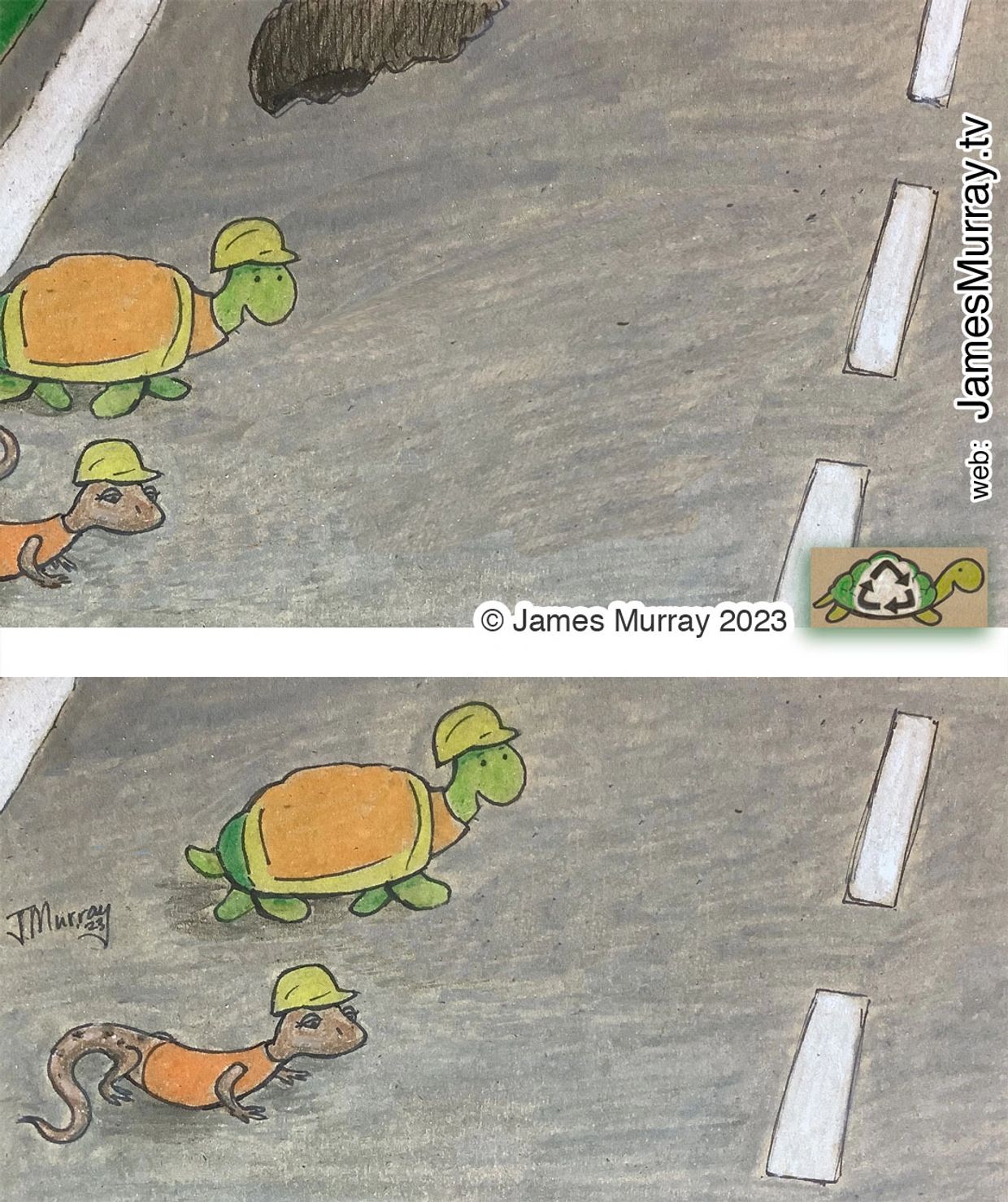 En mars 2023, James a créé un dessin animé qui a retenu l’attention de la coordinatrice de la Vermont PFAS and Military Poisons Coalition, Marguerite Adelman. Elle était heureuse de trouver un artiste engagé dans les enjeux environnementaux. Marguerite a travaillé avec James sur deux projets artistiques pour la coalition ; il a conçu une bannière de 3 x 6 pieds (montré ci-dessus) et une affiche (11 x 17 pouces). Le site Web de The Vermont PFAS and Military Poisons Coalition présente la bannière et l'affiche : https://www.militarypoisons.org/free-materials