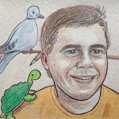 In March 2023, James created a cartoon drawing that received the attention of the coordinator of the Vermont PFAS and Military Poisons Coalition, Marguerite Adelman. She was happy to find an artist who is committed to environmental issues. Marguerite worked with James on two art projects for the coalition; he designed a 3 x 6 foot banner (shown above) and a 11 x 17 " poster.
